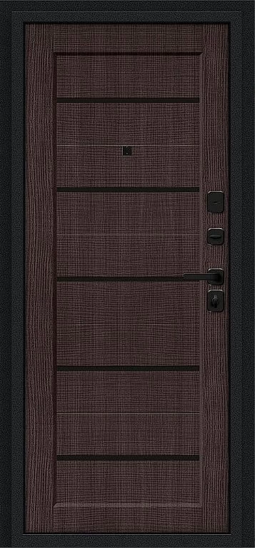 Надежная входная Дверь Браво Борн/SBlack Букле черное/Wenge Melinga премиум класса по цене 33 299 руб. Большая толщина стали защитит от проникновения в ваш дом, квартиру или коттедж. Используется очень качественная фурнитура: замки, цилиндры, ручки, защелки. Покрытие и отделка двери изготовлено под внимательным контролем производителя. Дверь имеет долгий срок службы и гарантию.